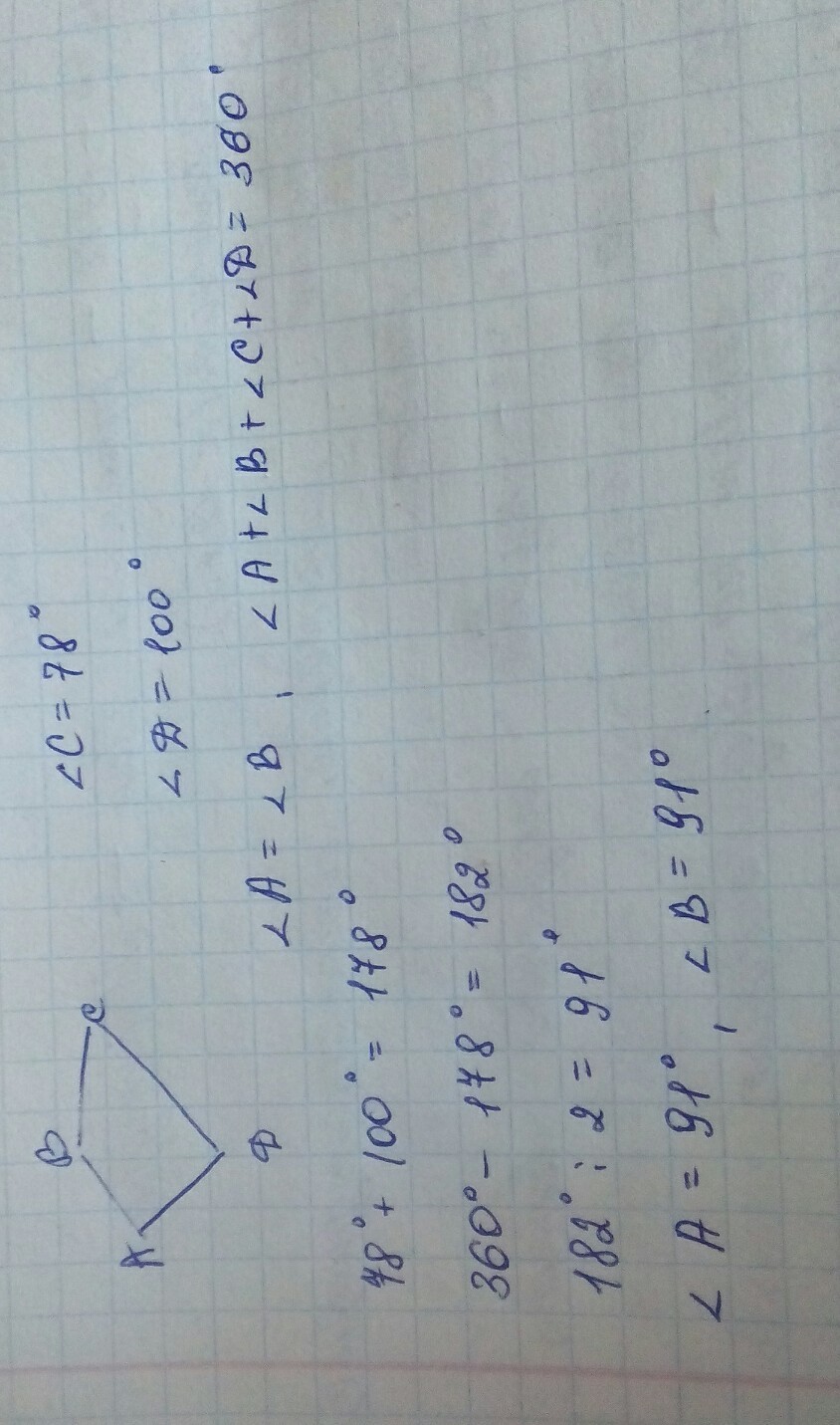 Угол А равен углу В равен 91 градус