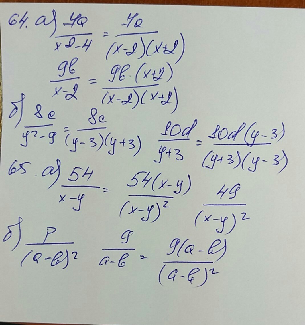 Преобразуйте заданное пары алгебраических дробей так чтобы получились дроби с одинаковыми знаменателями