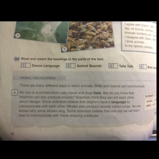 Никто не удивляется тому, что кошки мяукуют, а собаки лают. Но знаете ли вы что дельфины тоже могут производить звуки? Ученые считают, что они могут сообщать друг другу об опасности. Некоторые ученые думают, что у дельфинов есть свой язык с помощью которого они общаются друг с другом. Киты также издают звуки которые называют "песнями". Никто понятия не имеют почему киты "поют". Ученые верят что однажды мы изучим этот язык и сможем общаться с этими удивительными созданиями.