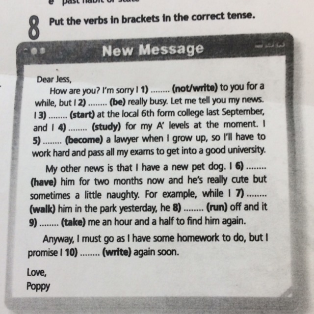 1- not was; 2- was; 3-started; 4 study; 5- become; 6- has; 7- walking; 8- runing; 9- take; 10-writed.