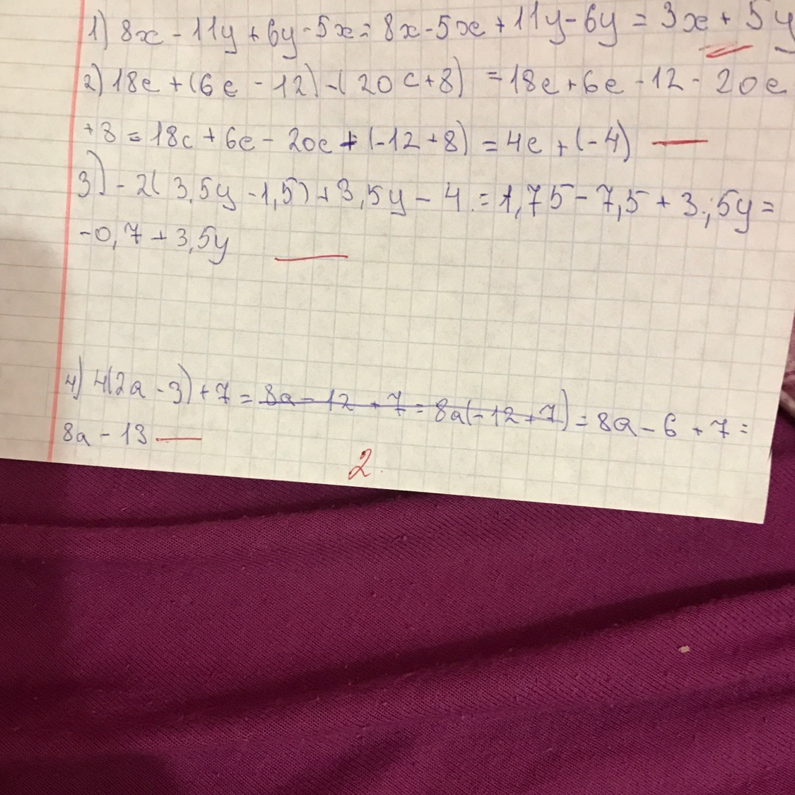 4) 4(2а-3)+7=8а-12+7=8а-5