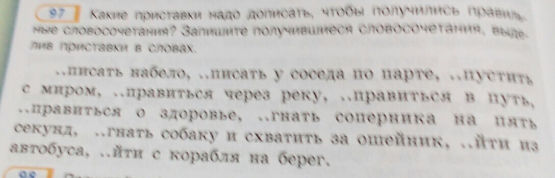 какие приставки надо дописать чтобы получились правильные словосочетания Запишите получившиеся словосочетания Выделив приставки в словах