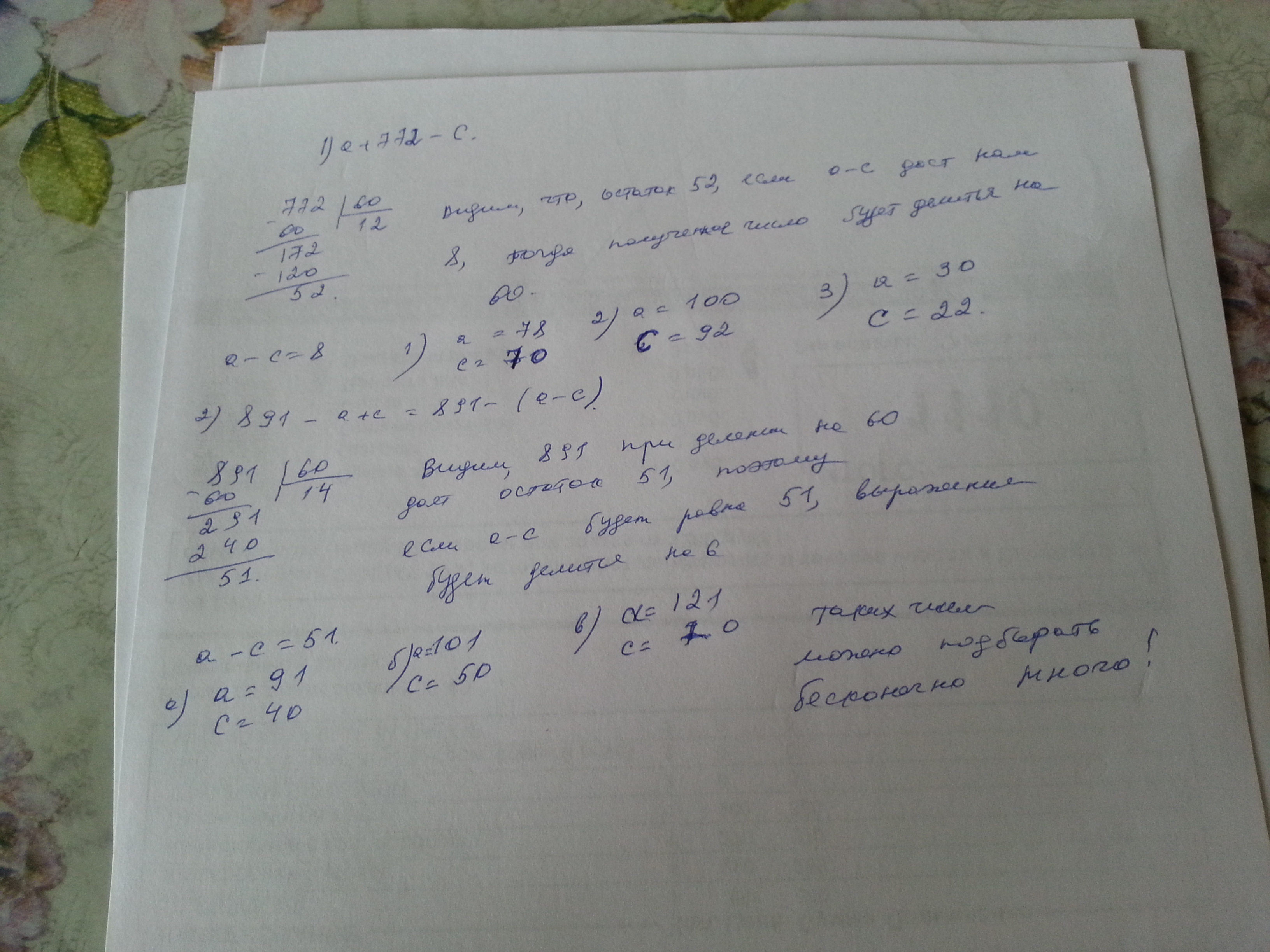 укажите 3 числа, которые можно подставить вместо букв a и c,чтобы делилось на 60 выражения: