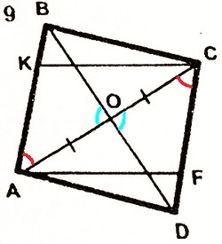 Если в четырехугольнике диагонали точкой пересечения делятся пополам, то четырехугольник - параллелограмм.