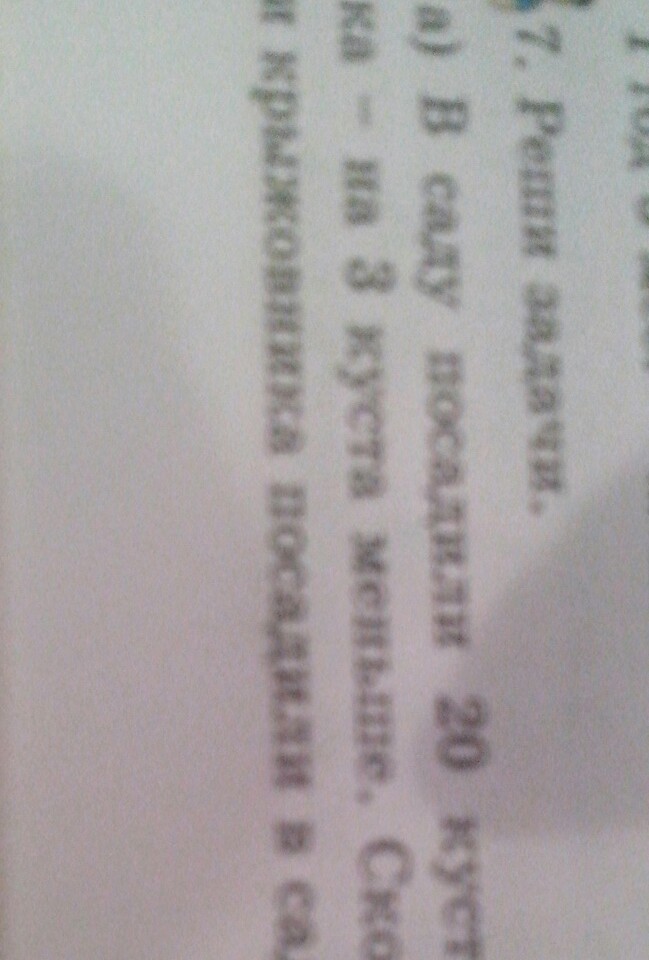 в саду посадили 20 кустов смородины и крыжовника на 3 кустов меньше Сколько всего кустов смородины и крыжовника посадили в саду