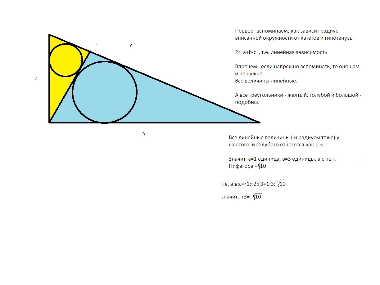 Высота прямоугольного треугольника, проведенная из вершины его прямого угла, разбивает данный треугольник на два треугольника, в которые вписаны окружности радиусов 1 и 3. Найдите радиус окружности, вписанной в данный треугольник