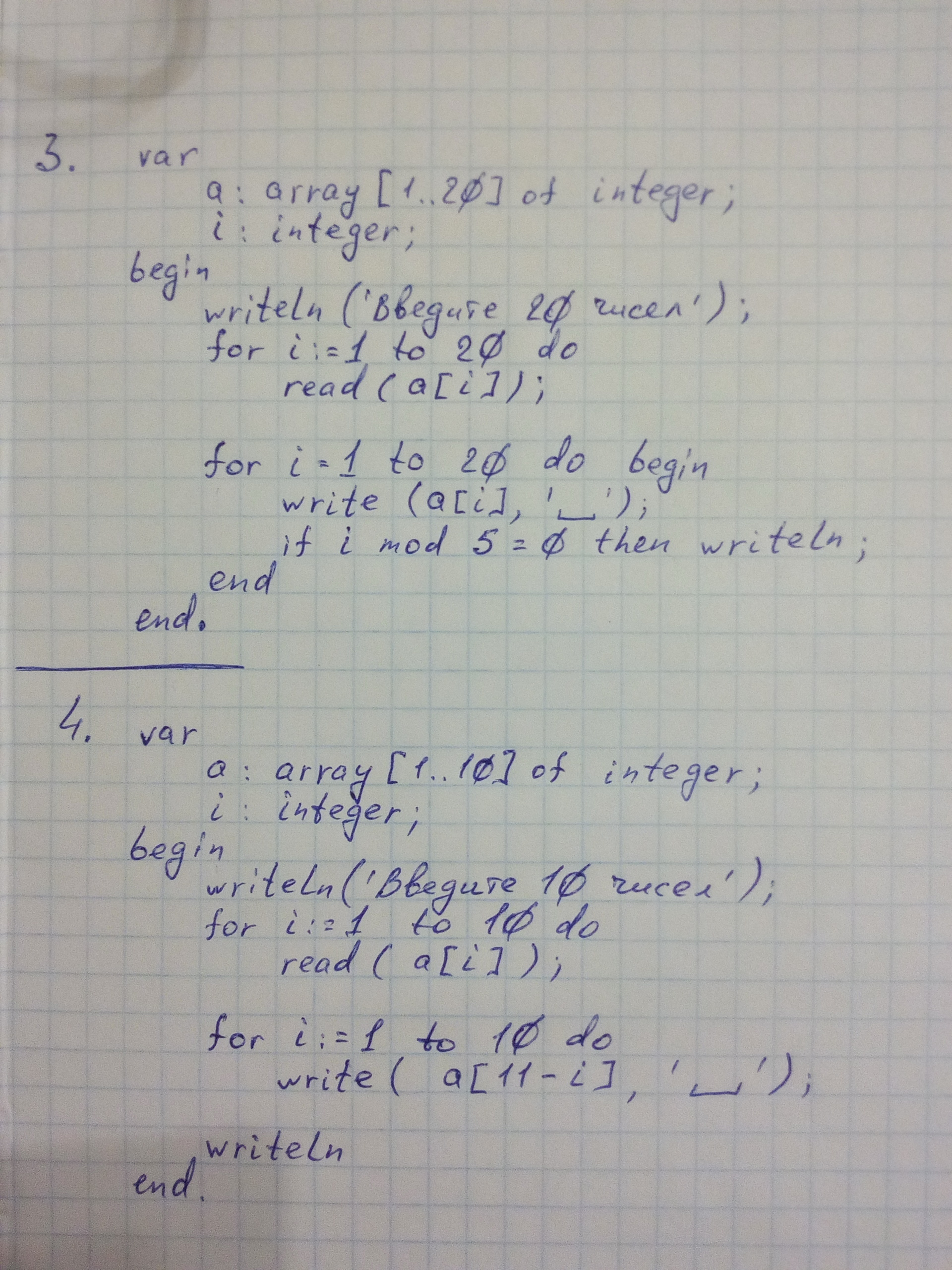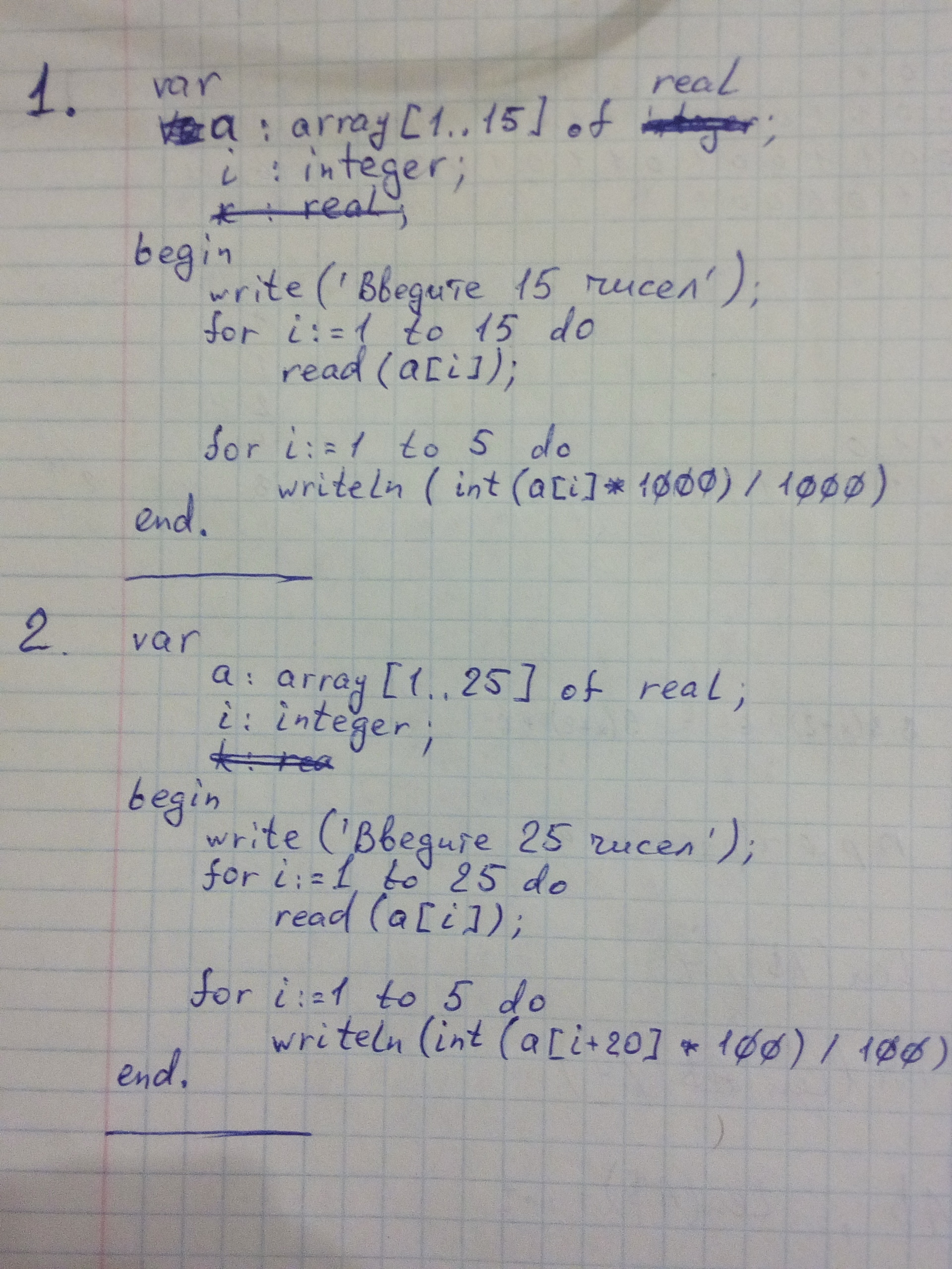 for i:=1 to 5 do writeln(a[i]:5:3);