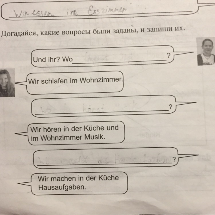 - Wir hören in der Küche und im Wohnzimmer Musik.