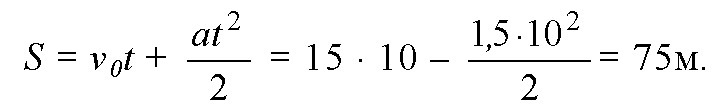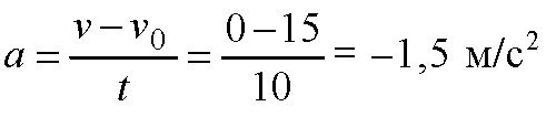 Трамвай, двигаясь со скоростью 15 мс, начинает торможение. Чему равно ускорения трамвая, если он останавливается через 10 с?