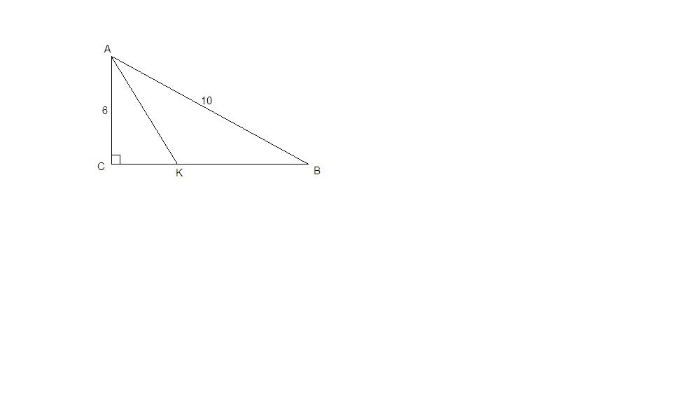 в треугольнике АВС с прямым углом С, АВ=10, АС=6. Найдите СК,если известно, что АК проходит через центр вписанной в треугольник окружности