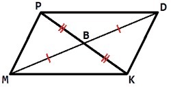 Если в четырехугольнике диагонали точкой пересечения делятся пополам, то четырехугольник - параллелограмм.