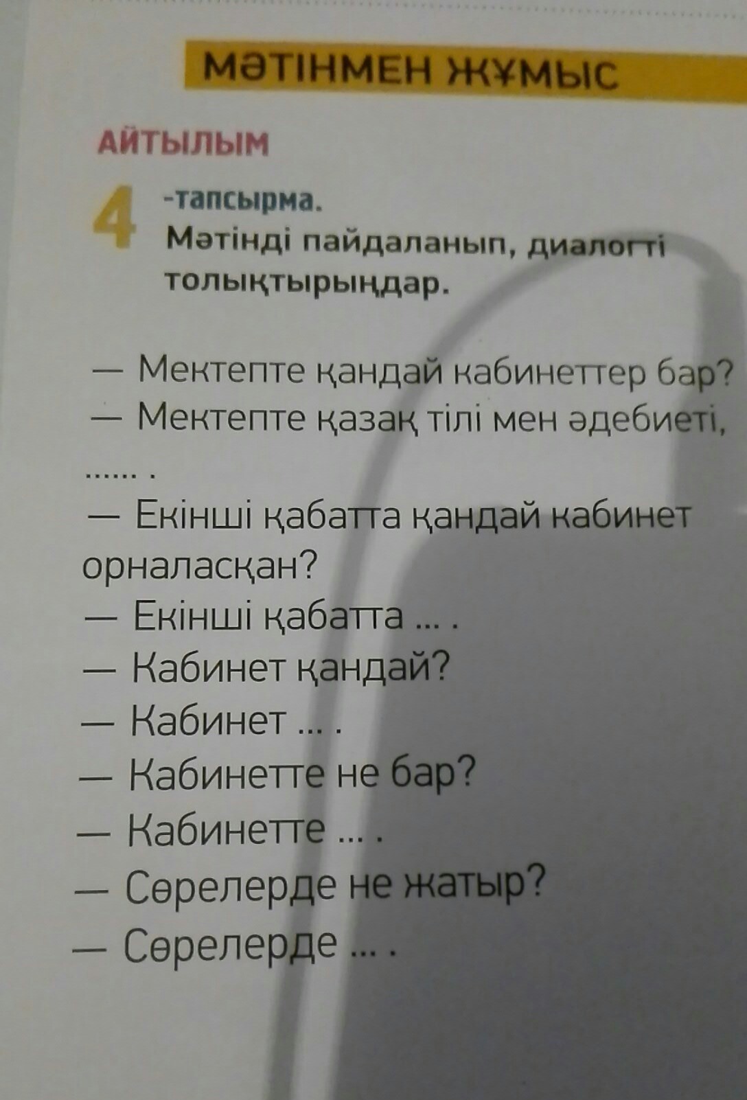 --Екінші қабатта қазақ тілі кабинеті орналасқан