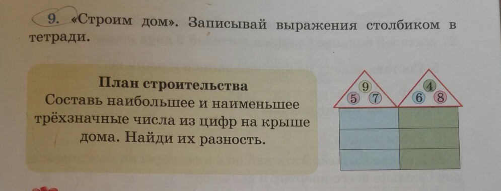 строим дом . записывай выражения столбик в тетрадь