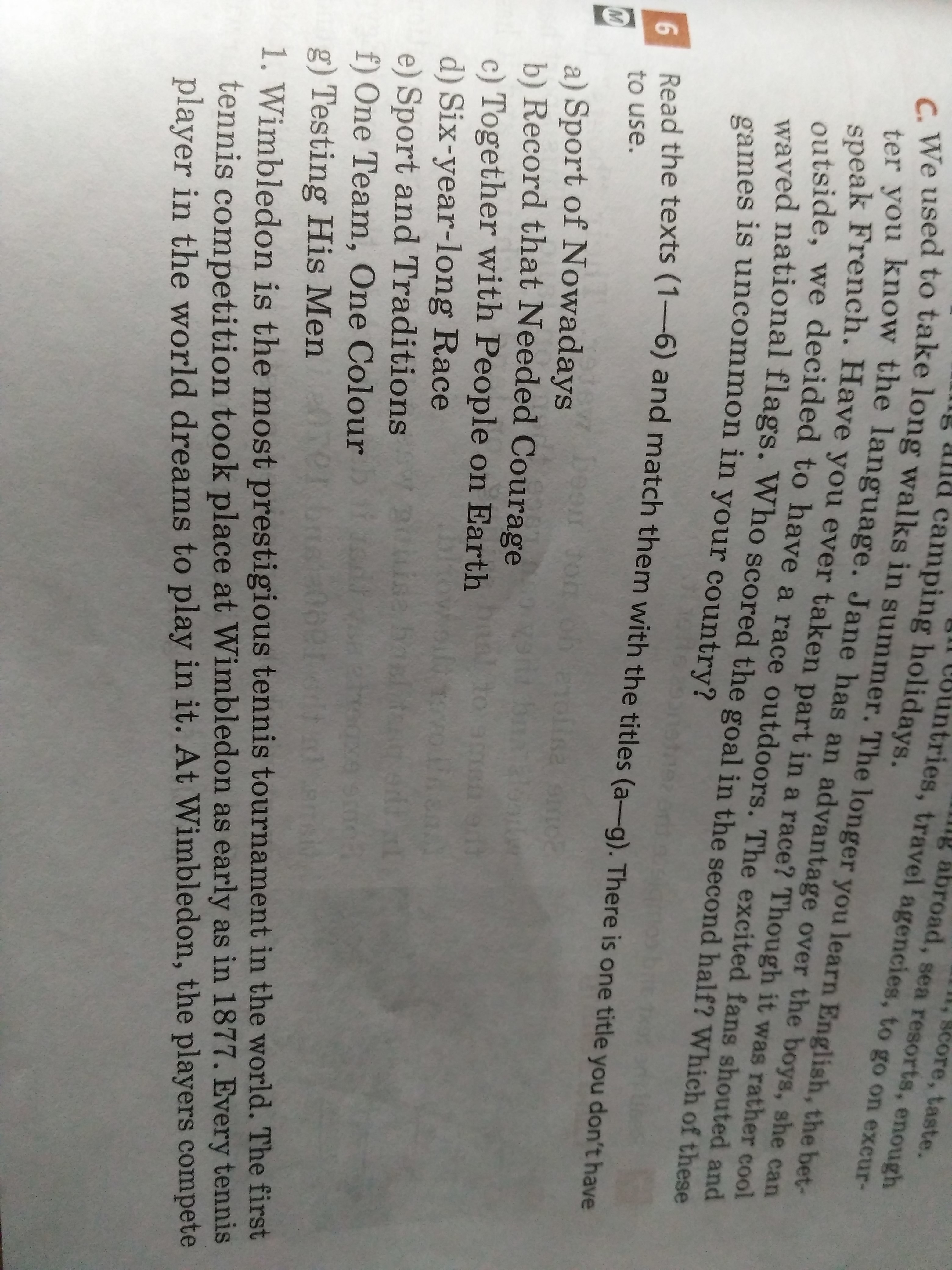Exercise 6. Read the text (1—6) and match them with the titles (a—g). There is one title you don't have to use. Даю 30 баллов, пожалуйста