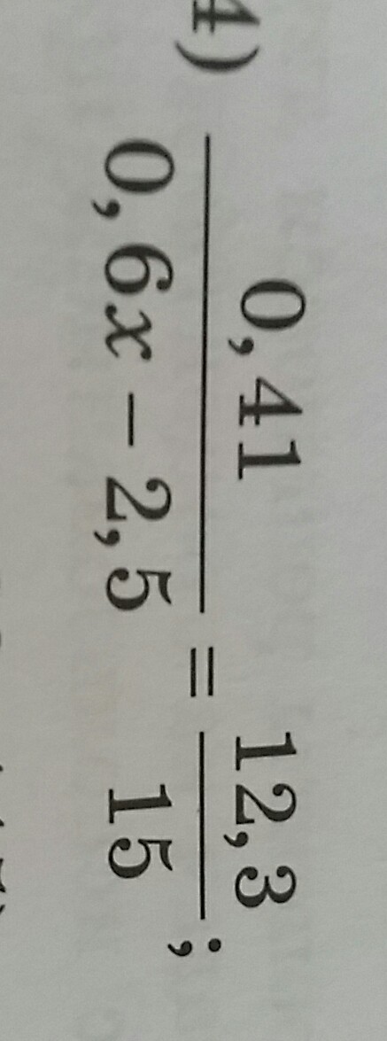 помогите рещит пж.Найдите x в пропорциях:1)0,41:0,6×-2,5=12,3:15