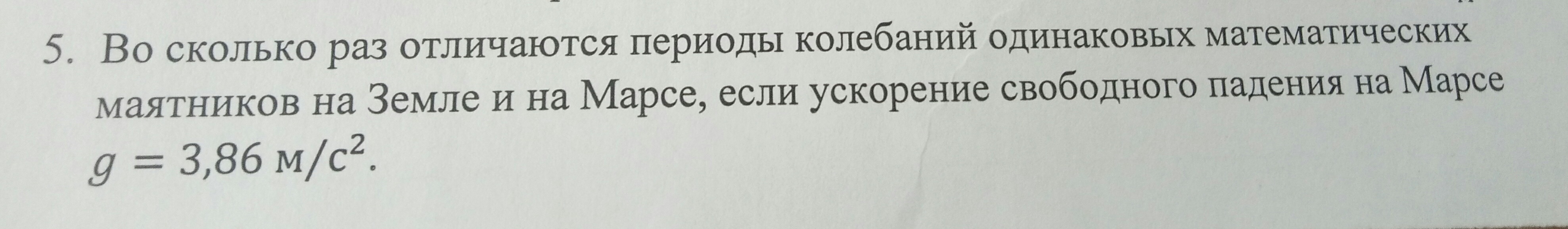 g₁=9,8 м/с² T₂=2π√L₂/g₂ на Марсе;