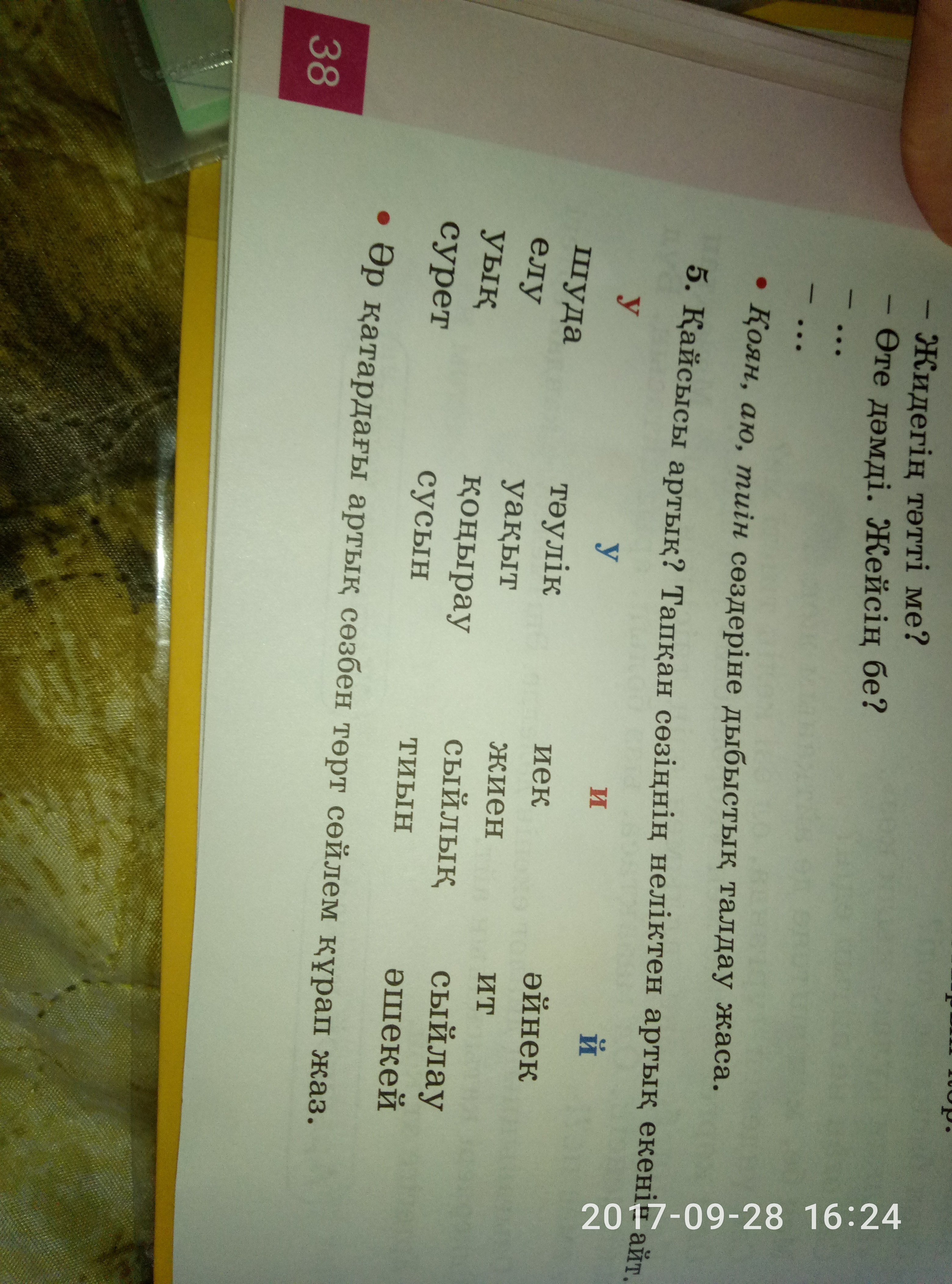 Артығы дегенде төбесінде көк болып тұрғаны дауыссыз ал қызыл болып тұрғаны дауысты.Мысалы біріншісінде у қызыл болып берілген сонда ол сөдің ішінен дауысты у болып турғанын жазасың.Дауысты у болып тұрғаны шуда