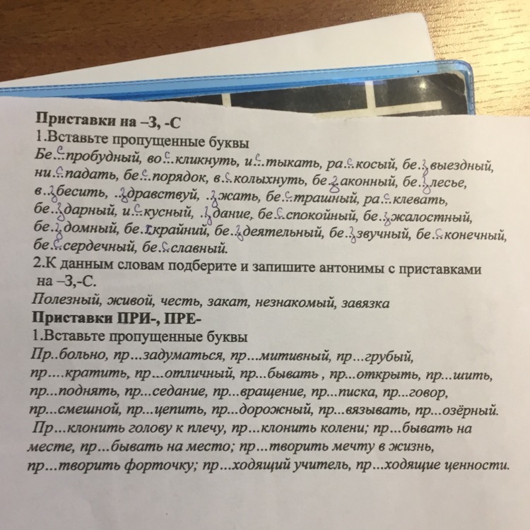 Пребольно, призадуматься, примитивный, прегрубый, прекратить, преотличный, пребывать, приоткрыть, пришить, приподнять, приседание, превращение, приписка, приговор, пресмешной, прицепить, придорожный, привязывать, приозёрный.