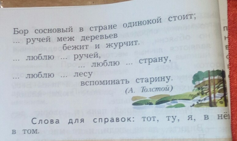 спиши стихотворение, вставь пропущенные местоимения в нужной форме. Назови местоимения - прилагательные.