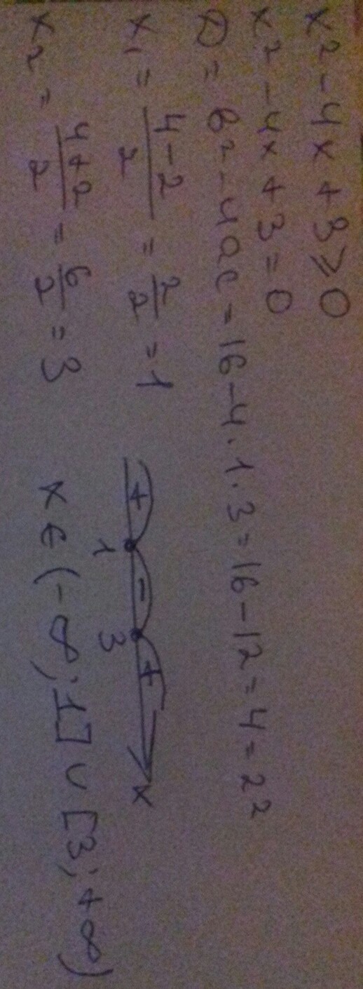 На каком рисунке изображено множество решений неравенства x^2-4x+3 больше или ровно 0