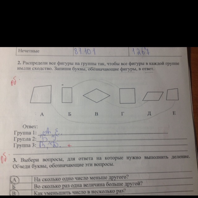 Группа 1: А,Е. Группа 2: Б,Г. Группа 3: В,Д