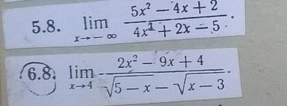 lim(x→∞) (5-4/x+2/x²)/(4+2/x-5/x²)=(5-0+0)/(4+0-0)=5/4=1¹/₄.