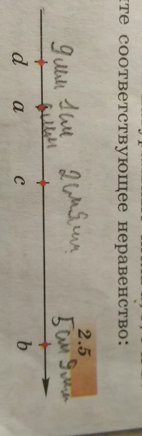 на координатной прямой (рис.2.5)отмечены натуральные числа a,b,c и d. Сравните указанные числа и запишите соответсвующее неравенство.