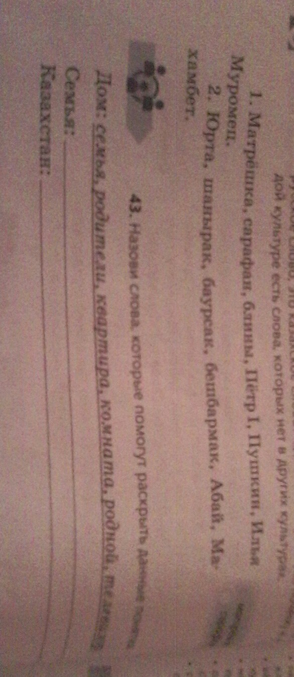 семья - мама папа я брат сестра (если есть) домашнее животное казахстан хз.