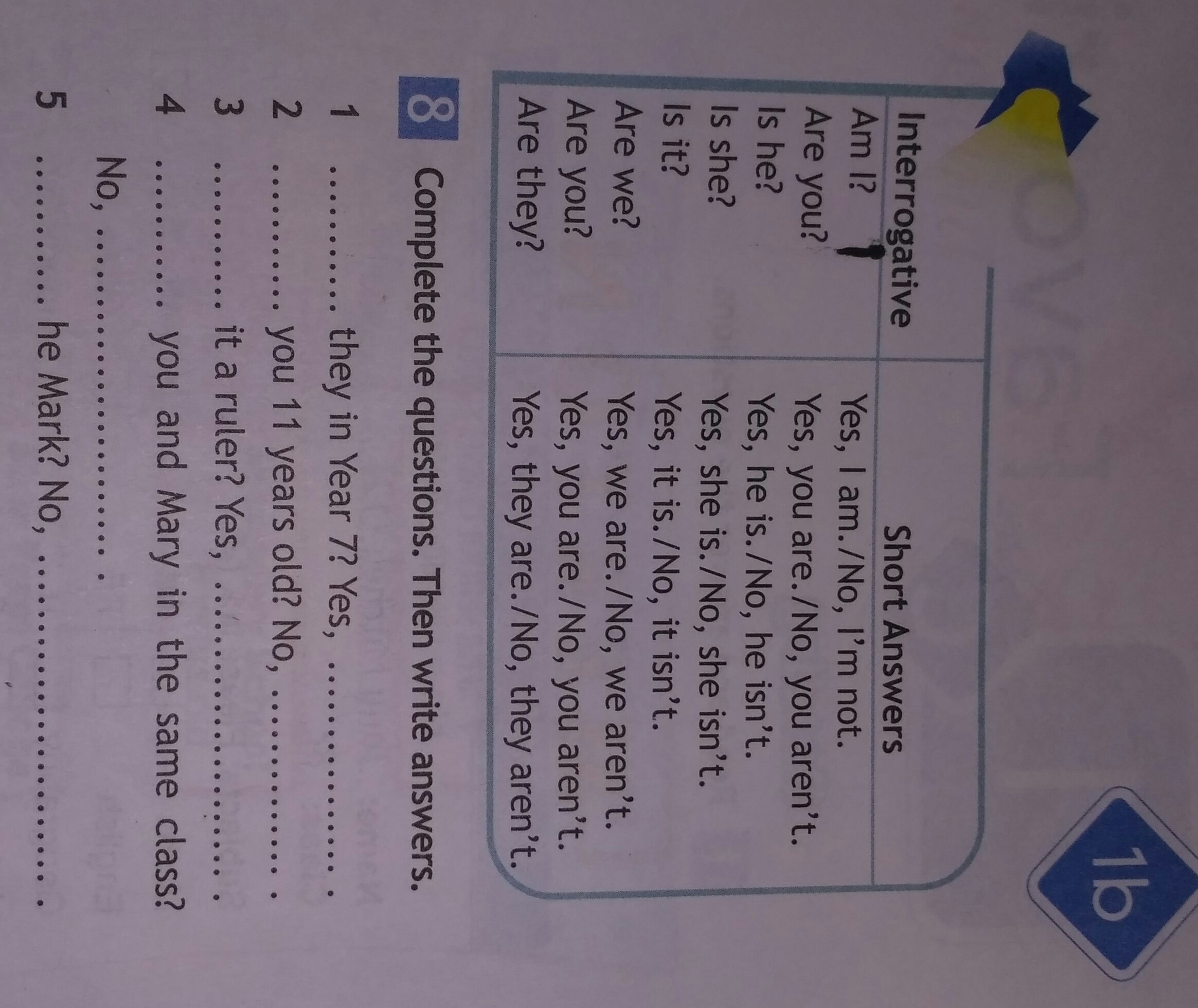 1)Are; they are. 2) Are; you aren't. 3) Is; it is. 4) Are; we aren't. 5) Is; he isn't