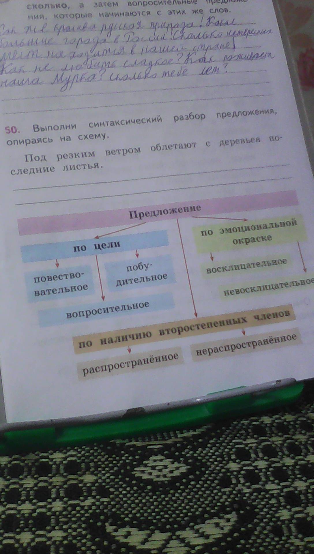 Хм....у меня такого не было. Если надо выбирать из схемы то... по цели - повествовательное. По эмоциональной окраске - невосклицательное . По наличию второстеп. членов - распространённое .