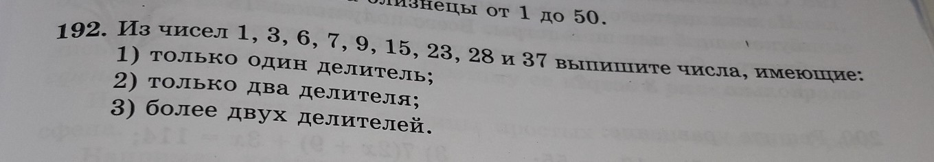 из чисел 1 ,3 ,6 ,7 ,9 ,15,23,28,37Выпишите числа имеющие только один делитель, только два делителя, более 2 делителей.