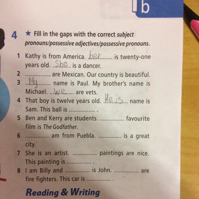 Там уже есть is зачем поставил(а) ещё is?Не надо))))This ball is pink.Benny and Kerry are students.They favourite film is the Godfather.I am from Puebla.Puebla is a great city.She is an artist.Katya paintings are nice.This painting is starry sky.I am Billy and my friend is John.They are fire fighters.This car is black.