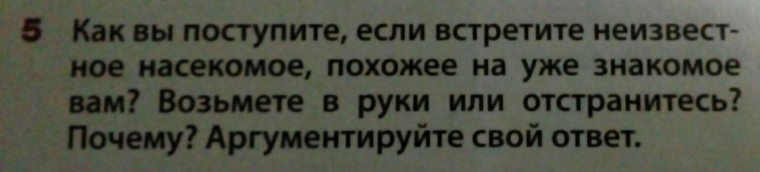 Перед тем как взять в руки незнакомое насекомое, но оно вам кажется знакомым, нудно убедится в этом. Нужно открыть интернет или энциклопедиею и почитать о нем. Узнать , не ядовито ли оно, и только после этого вы можете взять его в руки. Если вы не имеете возможности узнать об этом насекомом никакой информации, вам нужно отстранится от него.