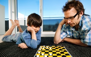 1 вариант)На выходных папа с своим сыном играют в шашки.Они думают как сходить,выиграть.2вариант)Сын с отцом играют в шашки,а шашки это игра с логикой и они размышляют как сходить.(выбирай любой вариант)