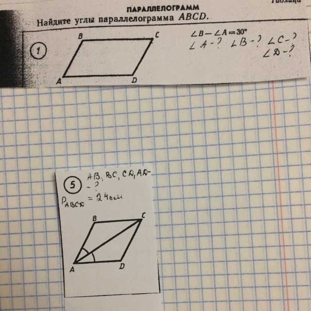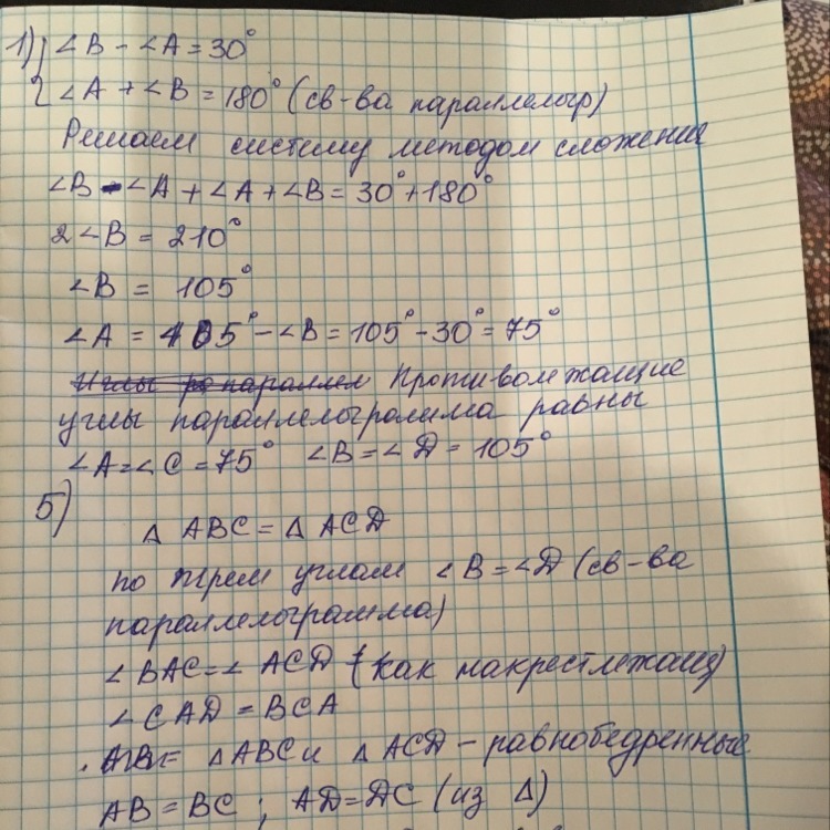 №1 Пусть угол A = x, значит угол B - x = 30 градусов.