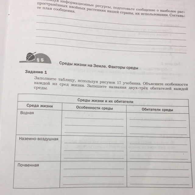 1Водная-жить и дышать под водой,обитатели-рыбы молюски планктоны и т.д..2Наземно-воздушная-он оно может обитать так и на суше так и на воде,обитатели-птица ворона может обитать на суше и на земле,и божья коровка или муха.3Почвенная-обитает под землёй и дышит или своим телом или иногда выходит на ружу,обитатели-крот,червь. Удачи тебе)