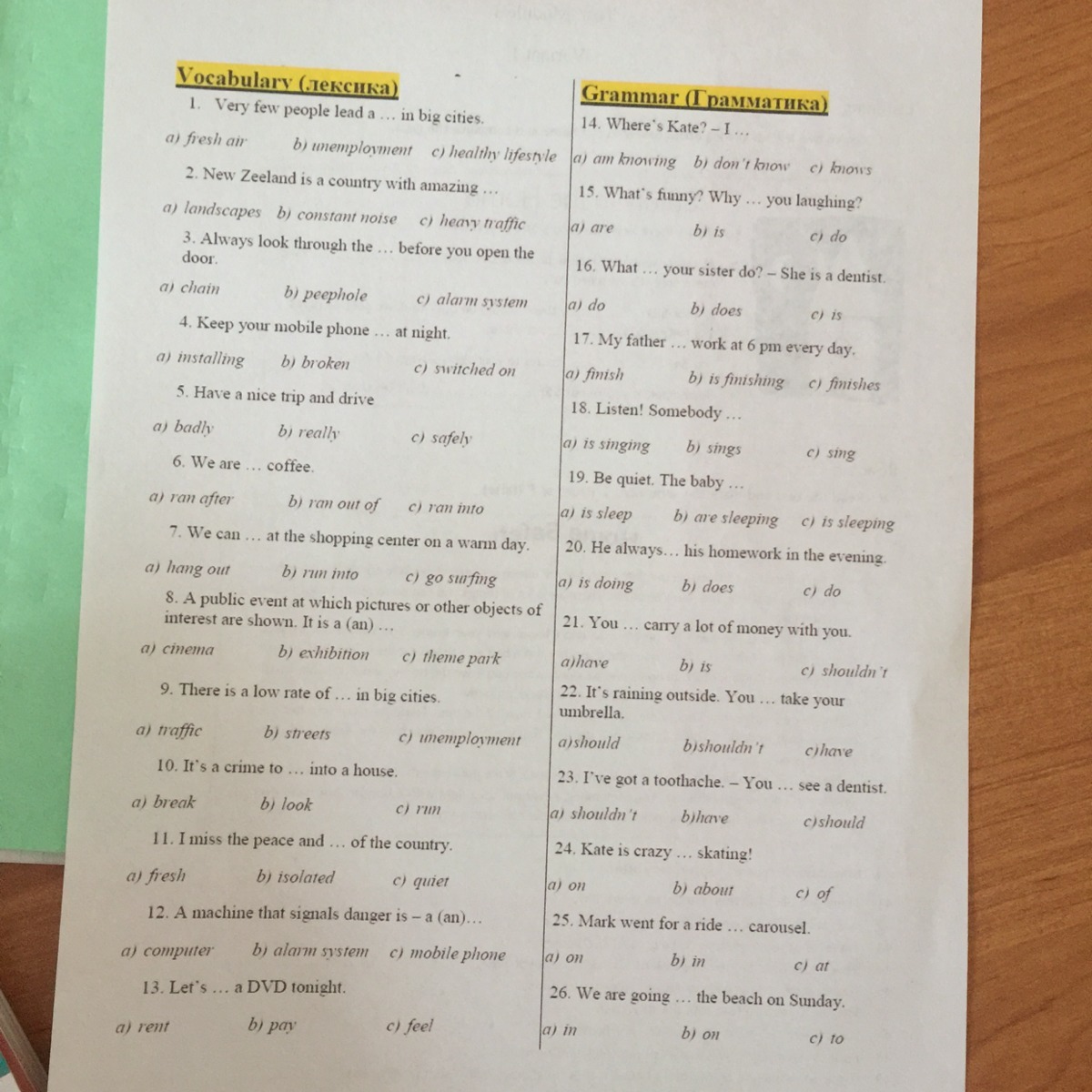 grammar /14-b 15 c 16-b 17 a 18 a 19 c 20 b 21 c 22 a 23 c 24 a 25 a 26 c