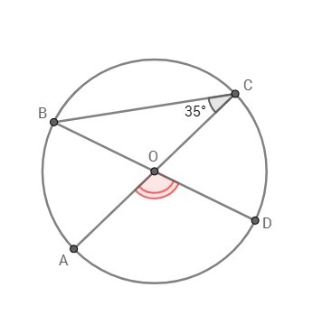 Отрезки ac и bd - диаметры окружности с центром в точке o. Угол acb равен 35. Найдите угол aid. Ответ дайте в градусах