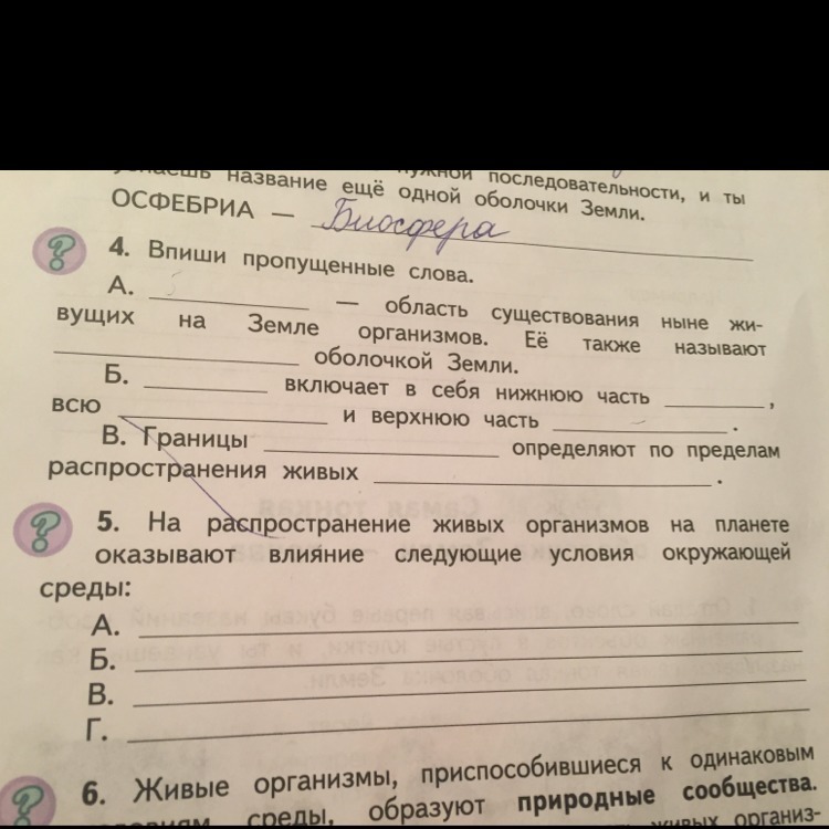Б Биосфера,атмосфер,гидросферу,литосферу.