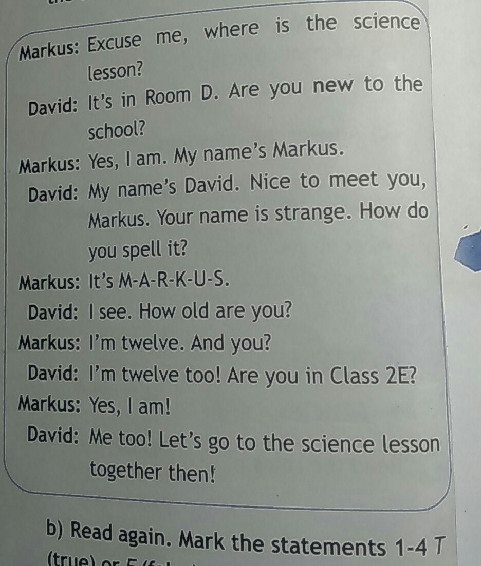 Дэвид: в классе Д. А ты новенький в этой школе ?