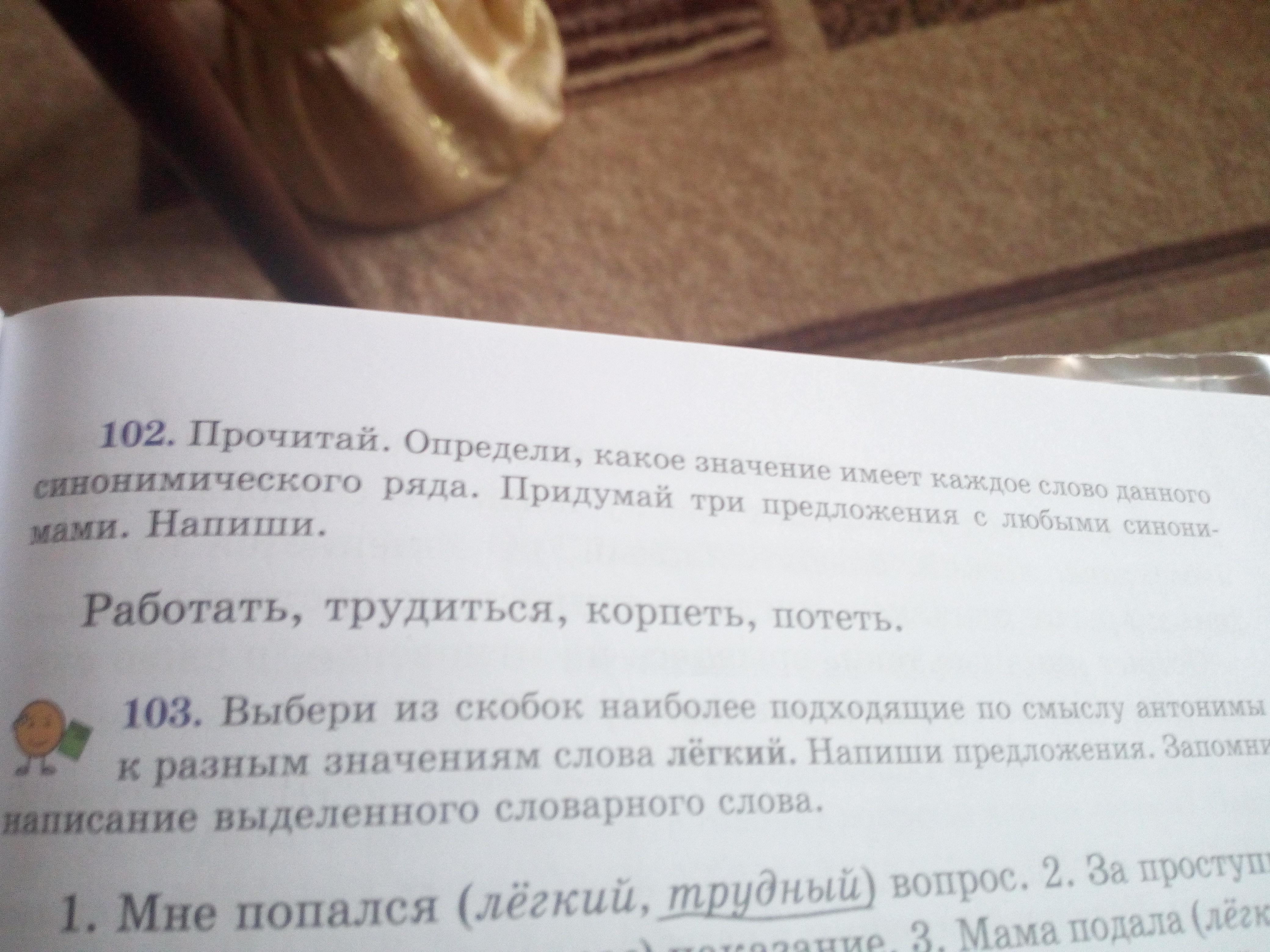 Корпеть-потеть-Когда ты выполняешь задание и тебе становиться сложно обычно говорят что ты "потеешь"