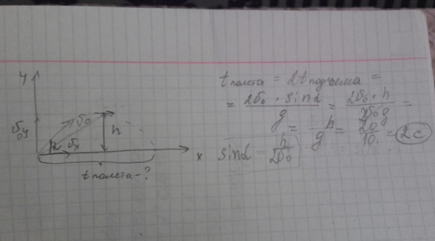 Лежащий на земле мяч после удара ногой полетел под углом к горизонту и поднялся до высоты 20м.Сколько времени продолжался полет мяча до его падения на землю?