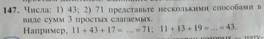 11+43+17=68-3=71; 11+13+19=40+3=43