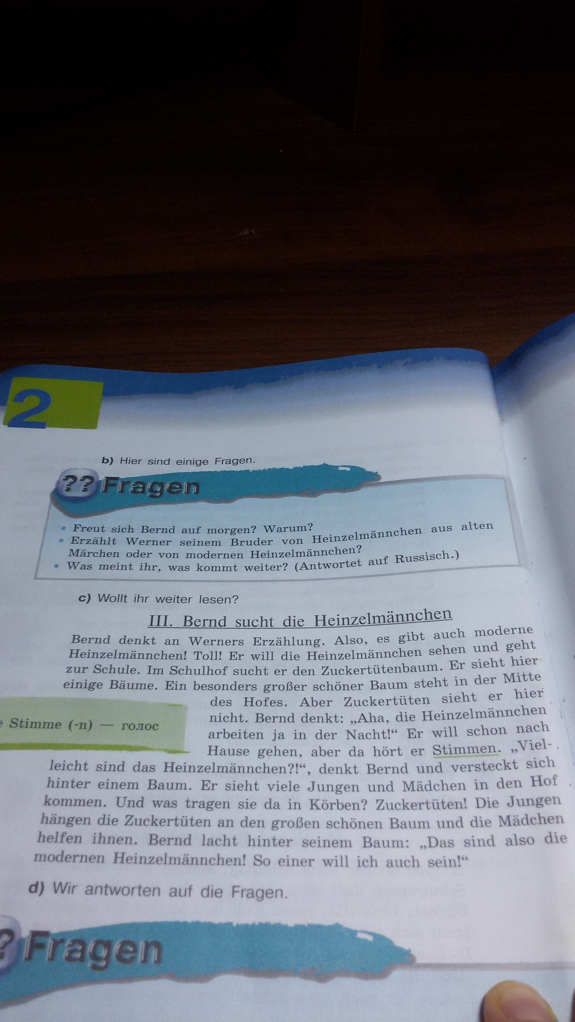 Бернд думает о рассказе Вернера. Итак, имеются также современные гномы (домовые). Восхитительно!! Он хочет грома видеть и идет в школу.На школьном дворе ищет он дерево с пакетиками /кулечками сахара. Он видит здесь несколько деревьев. Одно особенно большое прекрасное дерево стоит в средине двора. Но сахарных пакетиков он не видит тут. Бернд думает , ага гномы работают ночью. Он хочет уже домой идти, но тут слышит он голоса. Возможно это гномы,думает Бернд и прячется за дерево. Он видит,много мальчиков и девочек во двор идут.А что несут они в корзинках ? Сахарные пакетики!!Мальчики вешают сахарные пакетики на большое прекрасное дерево , а девочки помогают им. Бернд смеется за своим деревом,это современные гномы.Я также хочу одним быть.