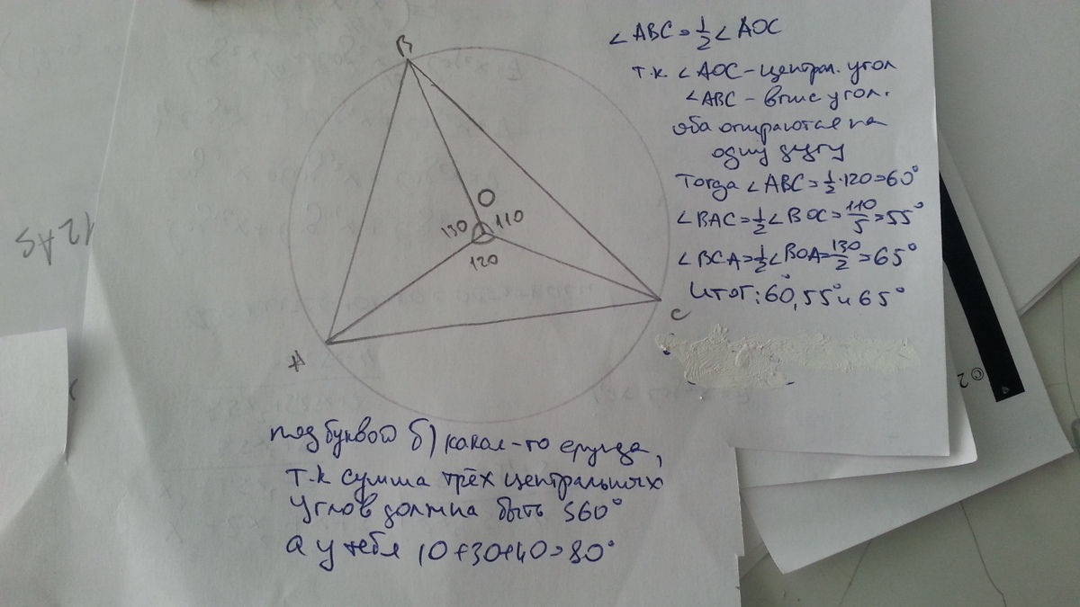Найдите углы треугольника,если его стороны видны из центра описанной окружности под углами: