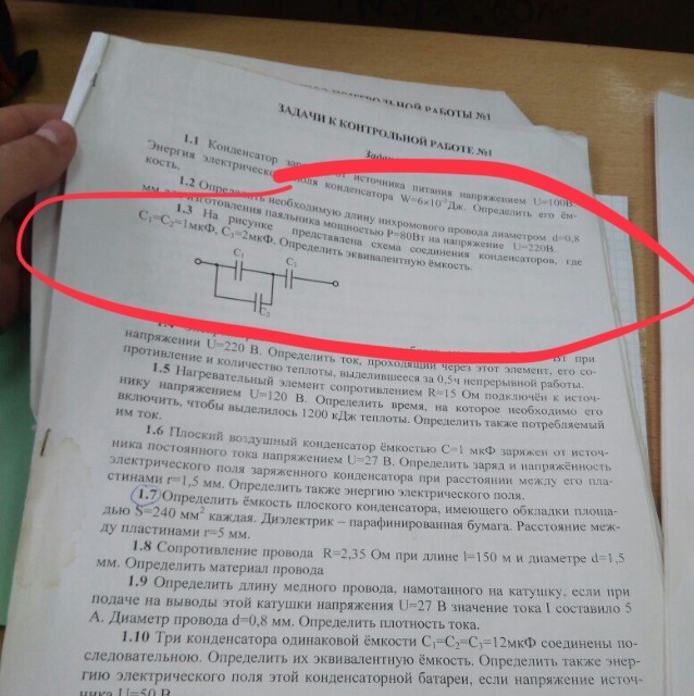 на рисунке представлена схема соединения конденсаторов, где C1=C2=1 мкФ.Определите эквивалентную ёмкость решить задачу