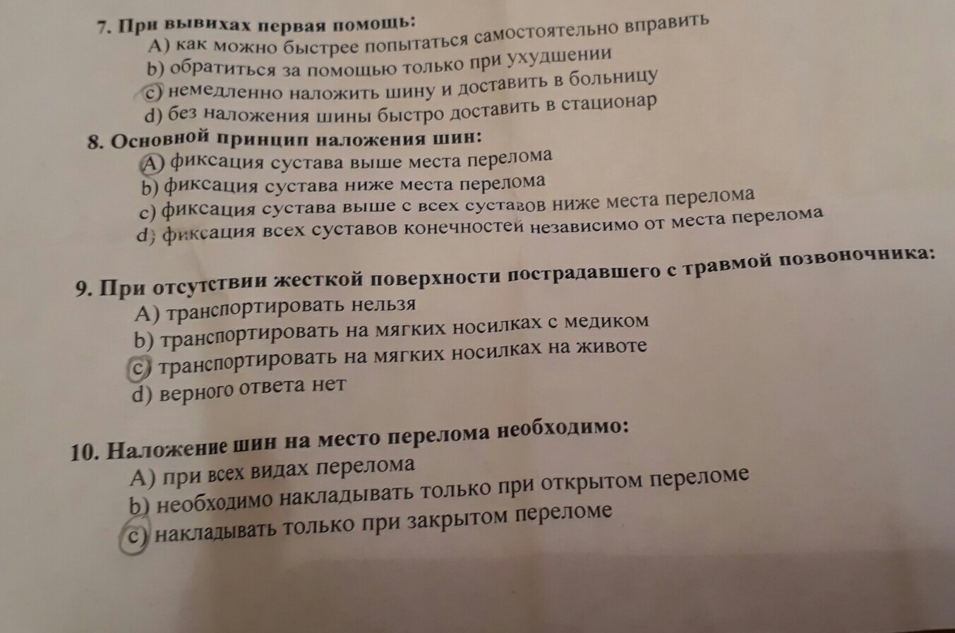8.d) фиксация всех суставов конечностей независимо от места перелома
