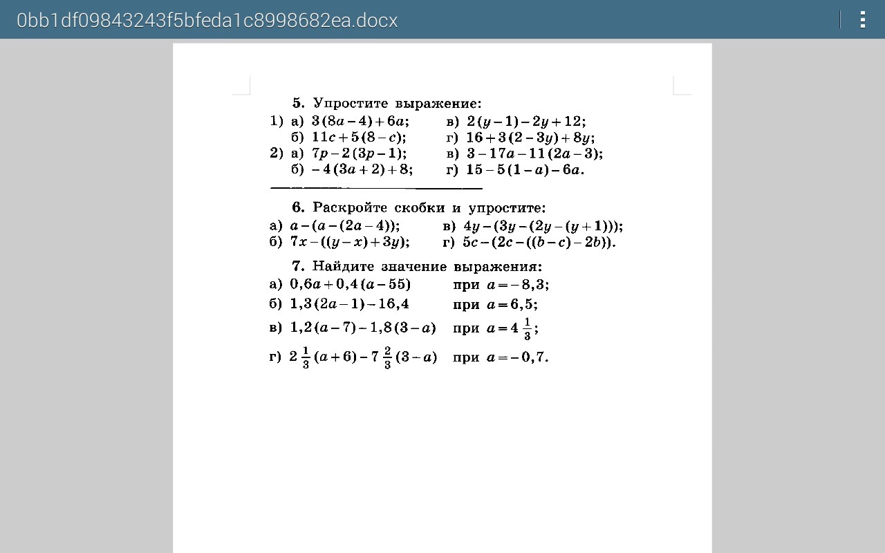 г) 16 + 3(2 - 3у) + 8у = 16 + 6 - 9у + 8у = 22 - у