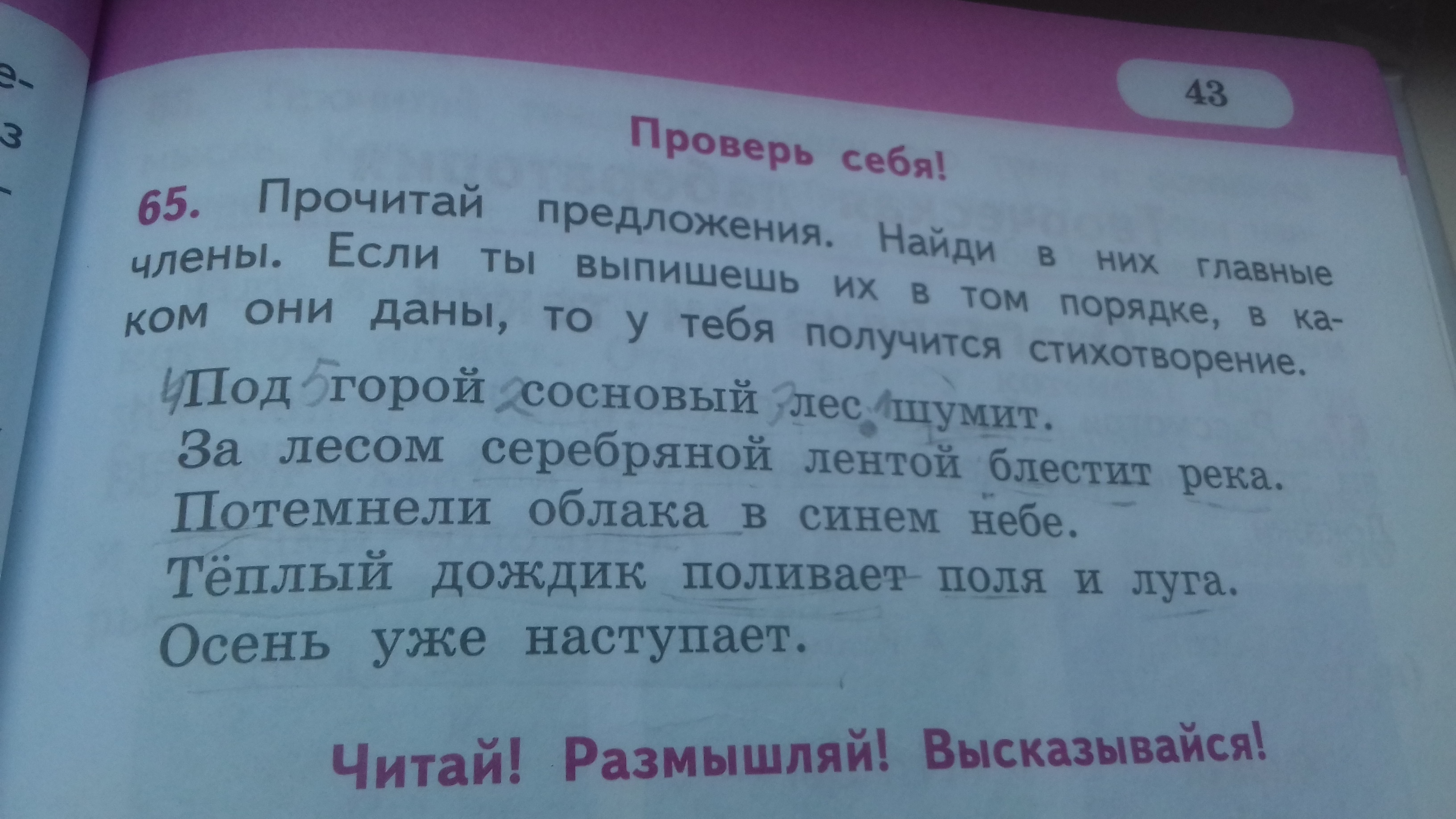 Осень наступает. [ОСЕНЬ-подлеж. НАСТУПАЕТ-сказуем]