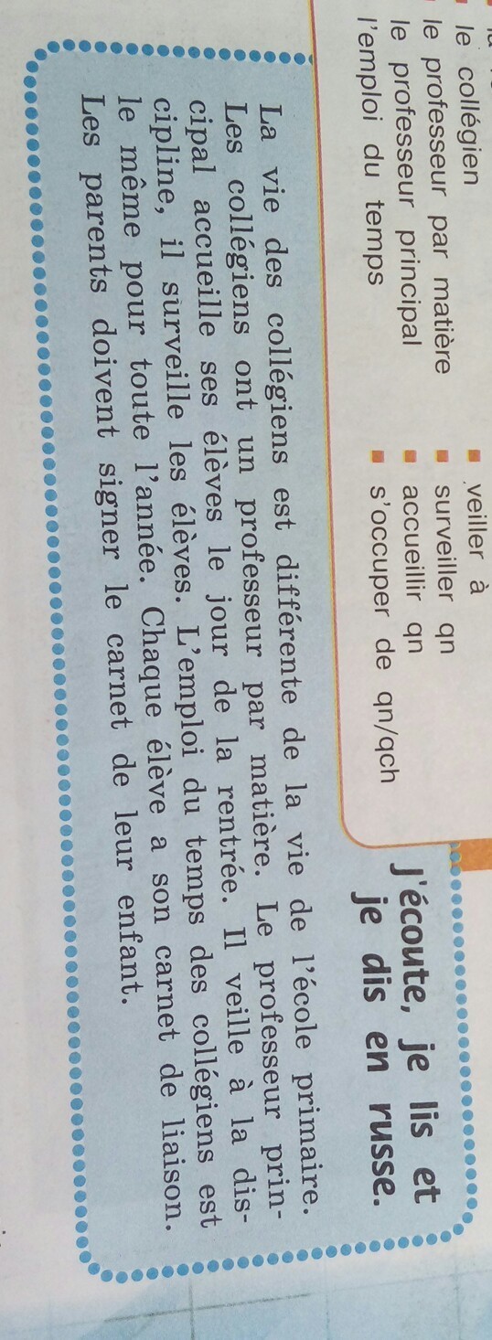 дисциплиной, он следит за учениками. Расписание уроков учеников коллежа одинаковое весь год. У каждого ученика есть свой дневник.
